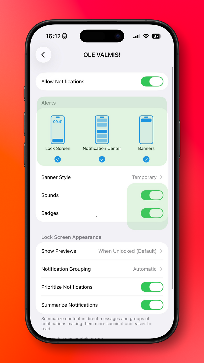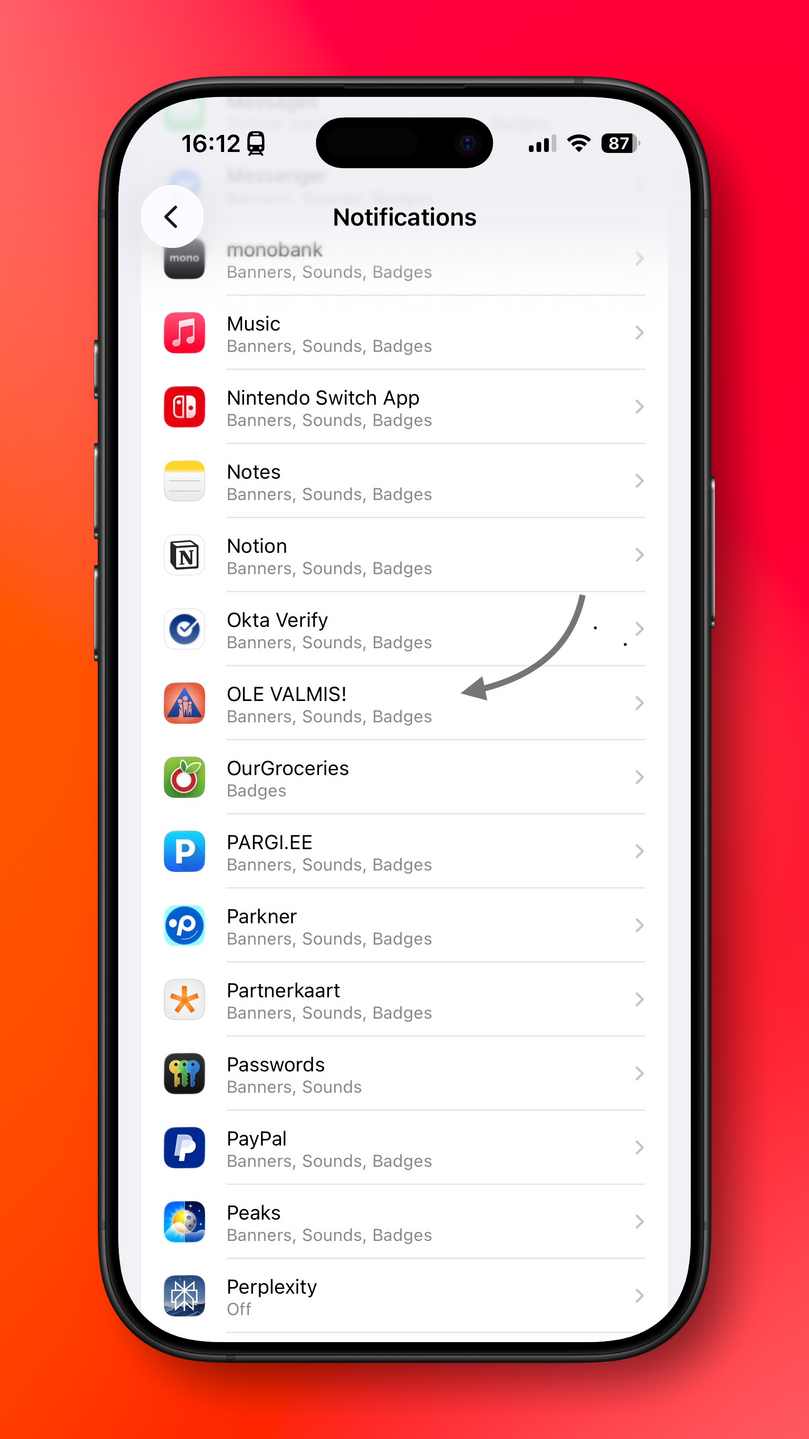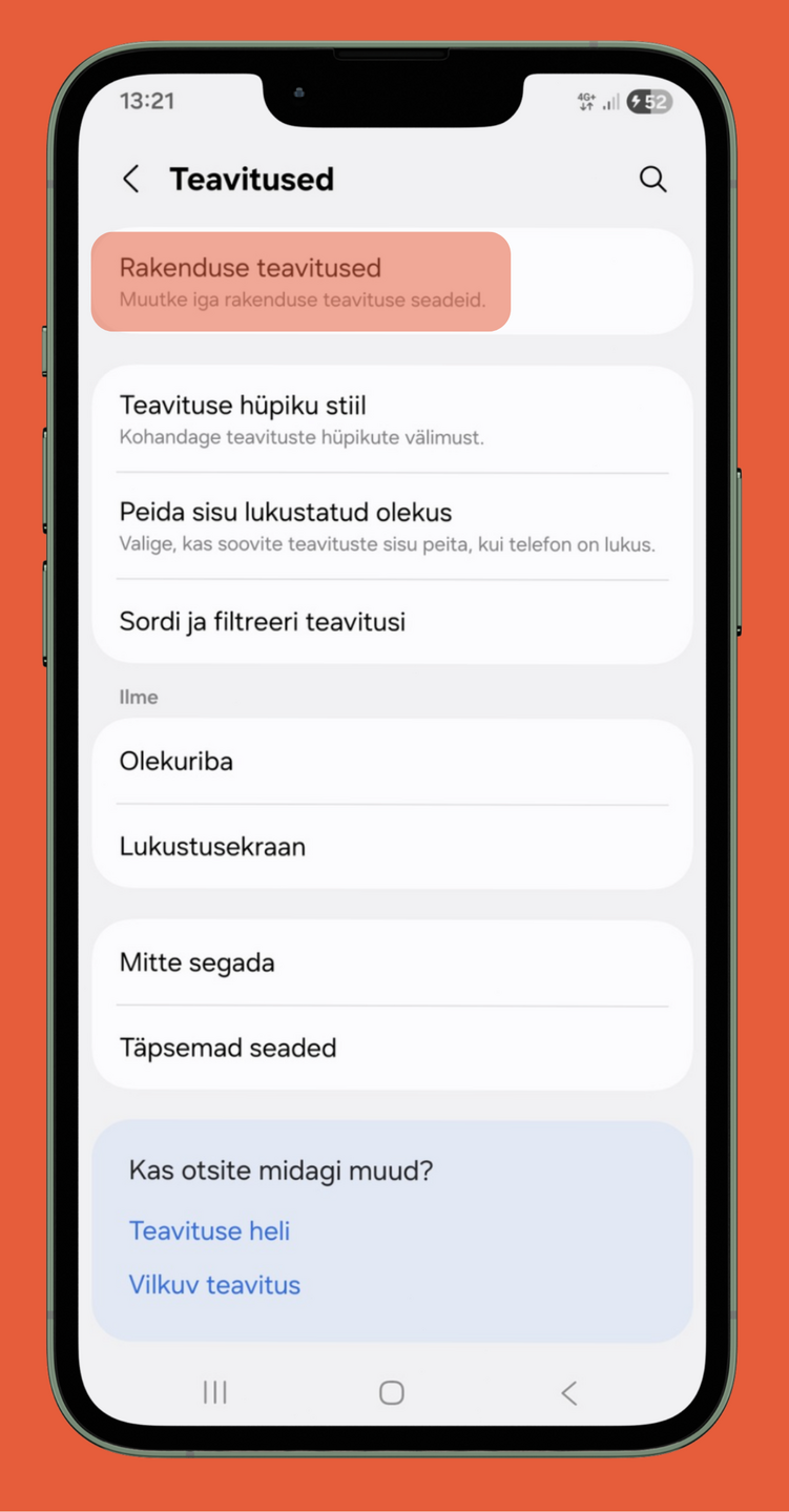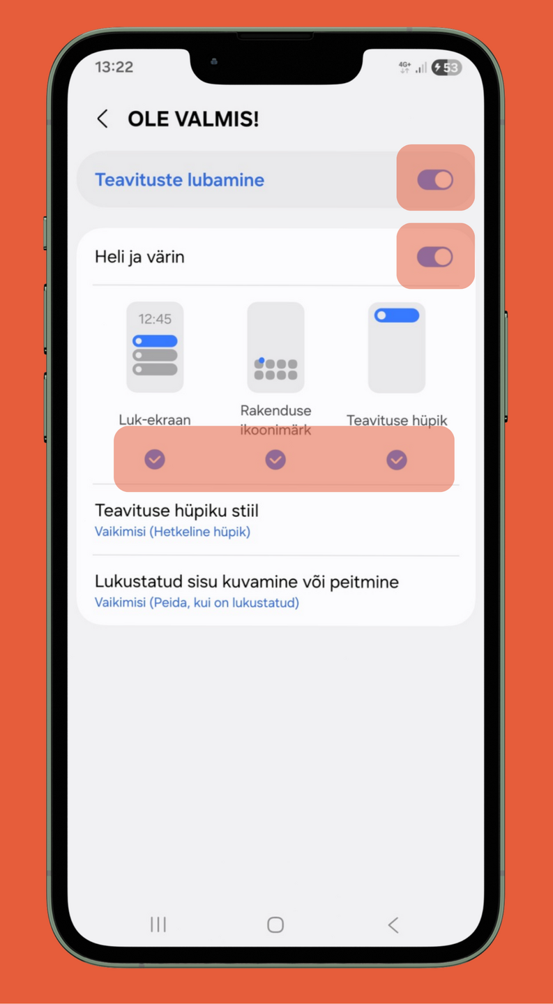 Kui need seaded on tehtud, tuleb üle vaadata ka seadme enda teavituste seaded.