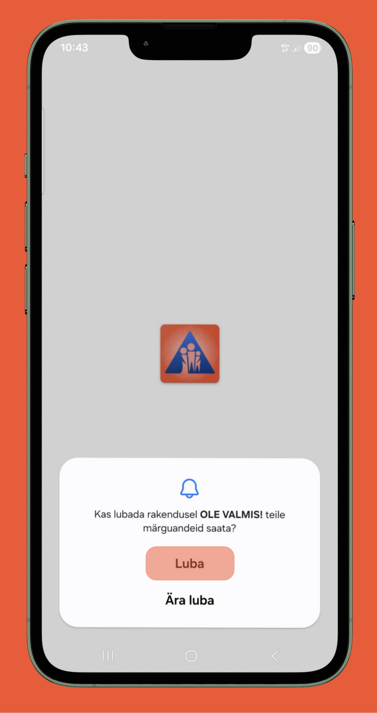 "Ole valmis!" äpi alla laadimise järel tuleb see vähemalt korra avada ning anda seadmele vajalikud õigused - anda luba saata teile märguandeid (1. pilt) ja lubada rakendusele juurdepääs seadme asukohale (2. ja 3. pilt). |