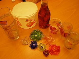 Kui salvrätid kenasti totsikutele-potsikutele kleebitud, võeti ette veel teinegi taaskasutusprojekt ja vormiti plastpudelid imelisteks prossideks. Siinkohal oli lausa imeline jälgida, kuidas täpselt sama tehnikat kasutades valmisid iga autori käe all ometi täiesti erinevad ehted. Eks see mõnel määral olenes ilmselt ka kasutatavast pudelist, aga meistri unikaalne lähenemine ei olnud kindlasti vähemtähtis. | ||