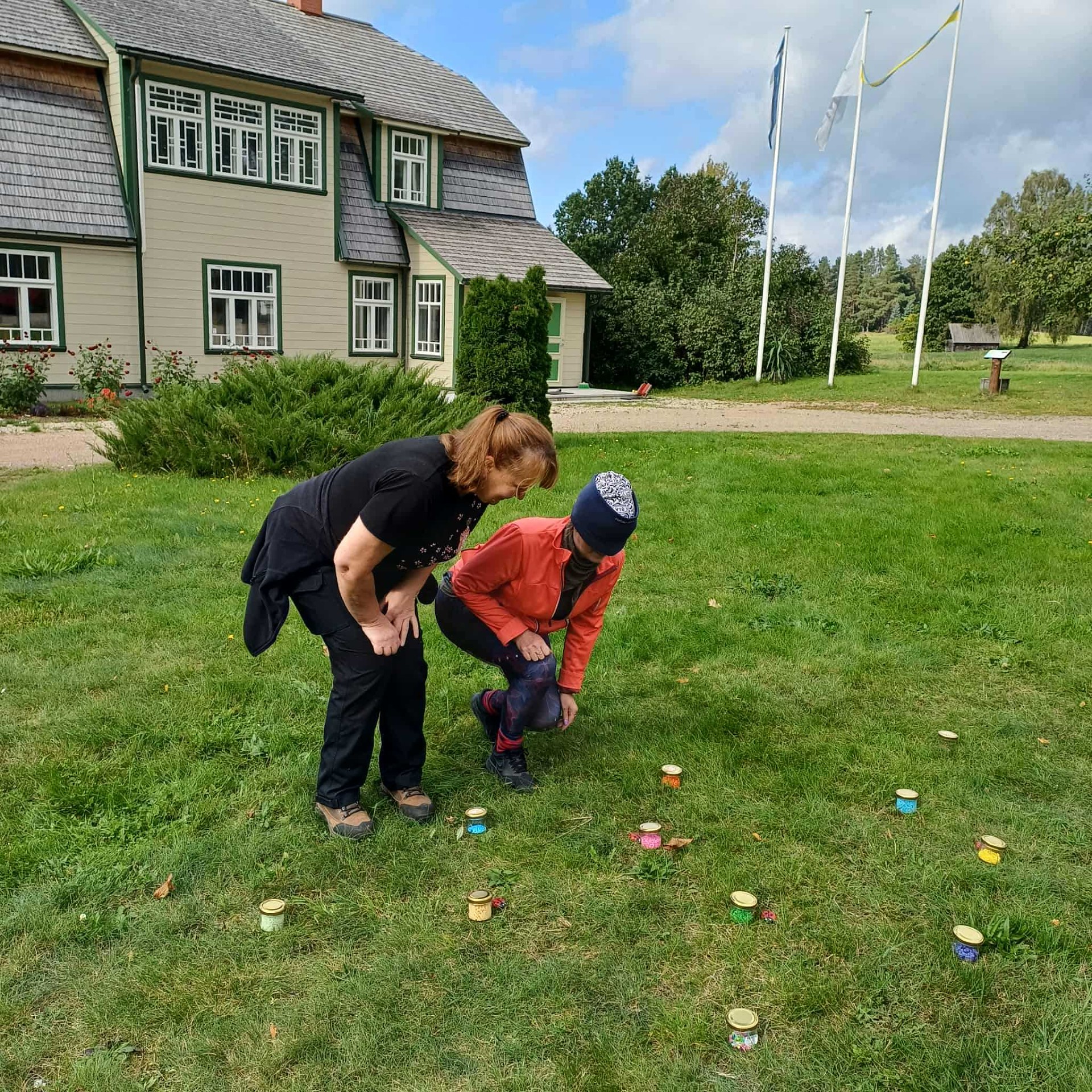 Kohale jõudes toimus kõigepealt enda nn matkameeleolule häälestamine Kaia valmis hakitud kartulisalatiga… ja kindel valik sinna juurde olid ka kommid. Kuniks me end ühel pool maja nö tankisime, oli teisele poole hoone õuele tekkinud miiniväli, millelt tuli igal meist juhendaja abil kuid seotud silmadega (ja ise õhku lendamata) päästa lepatriinud.