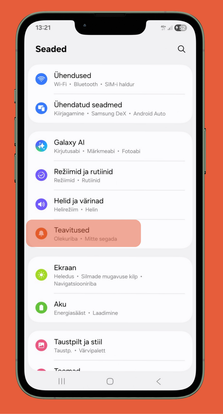 Kui need seaded on tehtud, tuleb üle vaadata ka seadme enda teavituste seaded.